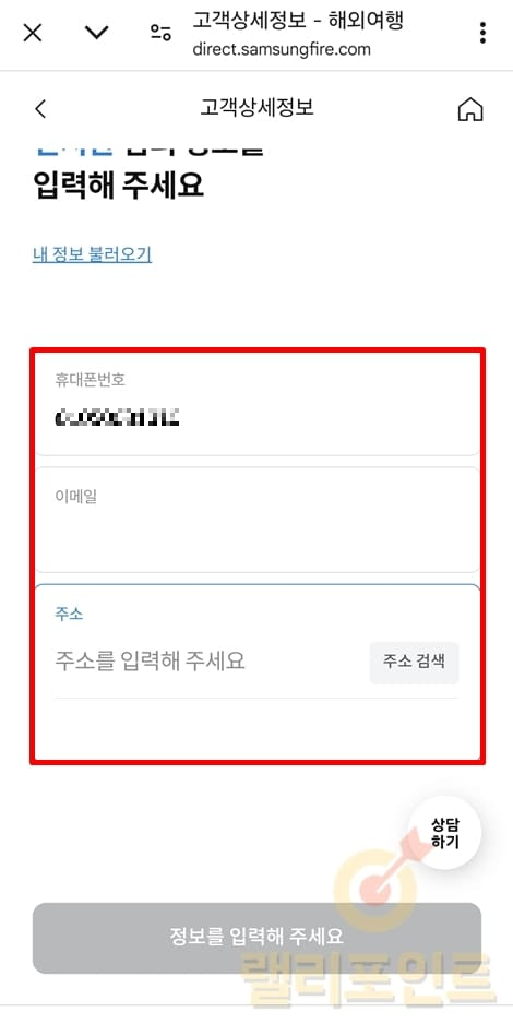 13. 휴대폰번호, 이메일, 주소 정보를 입력합니다.
