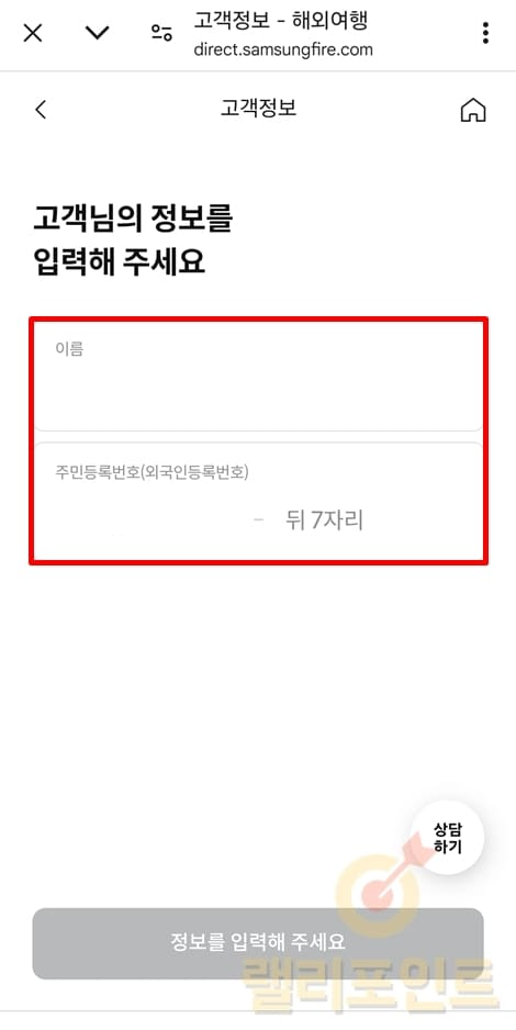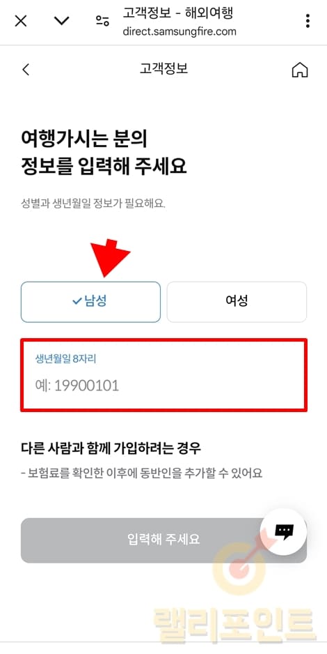 14. 함께 가입할 동행자가 있다면 정보를 입력합니다.