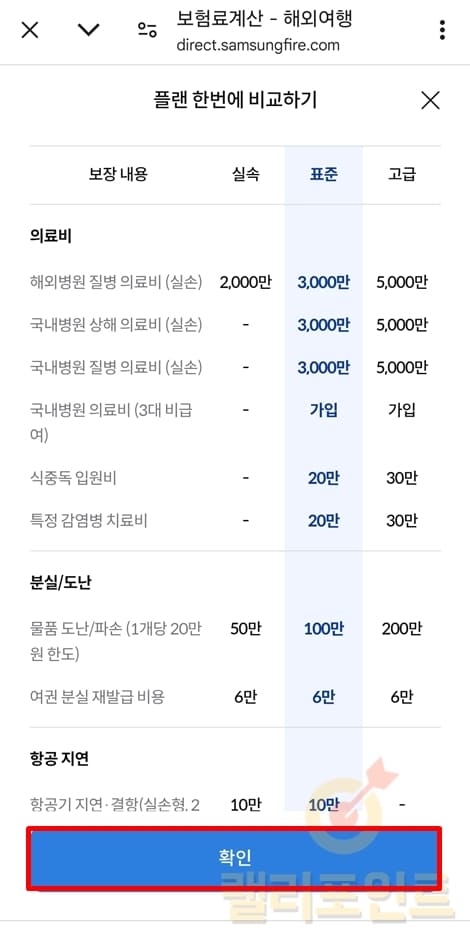 또한 보장 내용이 몇가지 마음에 들지 않는다면 직접 보장을 조절하여 가입할 수도 있으니 꼼꼼히 확인하셔서 원하는 보장내용을 모두 넣어보시길 바랍니다. 해외 여행자보험은 여행일자에 따라 가격이 결정되는 만큼 생각보다 많은 보장이 추가되어도 금액적으로 크게 부담되지 않으니 꼭 넉넉하게 설정하시길 추천드립니다.