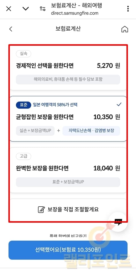 5. 해외여행자보험을 가입할 보험사를 선택합니다.