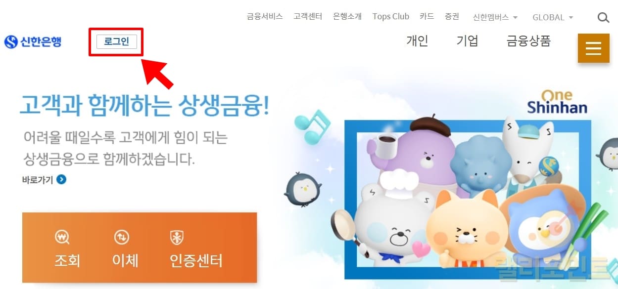 1. PC에서 신한은행 사이트를 실행 후 로그인합니다.