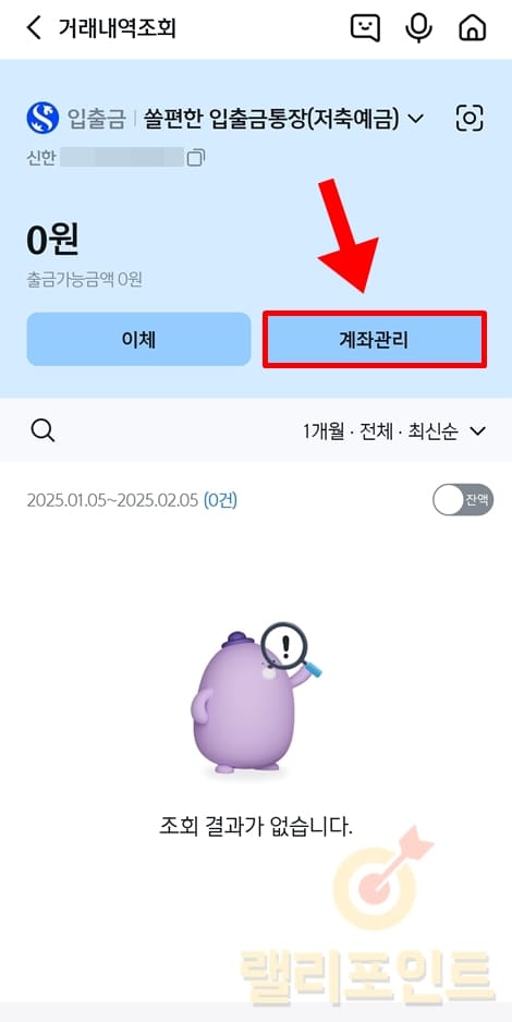 2. 홈 화면에 표시된 내 계좌를 클릭합니다.