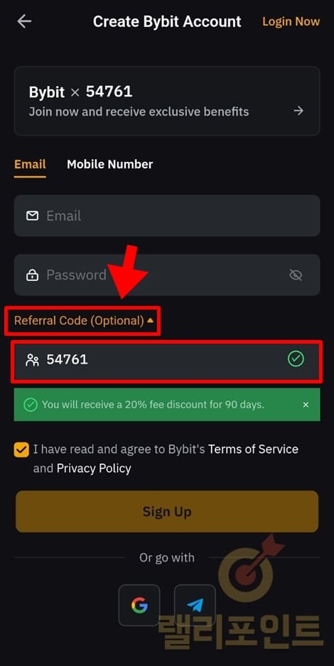 4. Referral Code (Optional)에서 54761을 확인합니다.