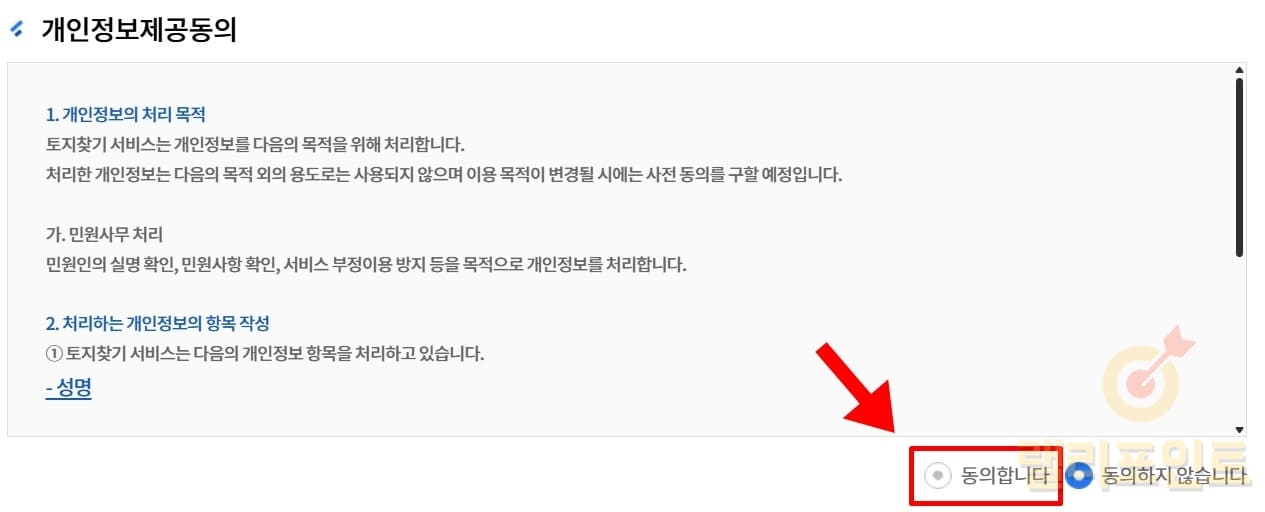 4. 개인정보제공동의 항목에서 동의합니다에 체크합니다.
