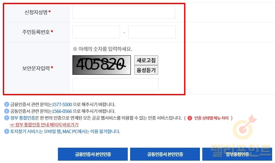 5. 성명, 주민등록번호, 보안문자를 입력합니다.