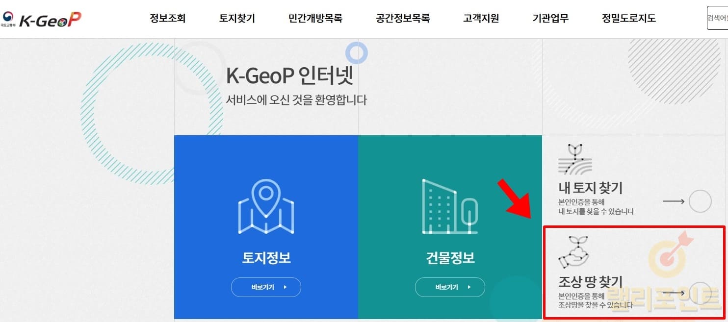 2. 우측에 있는 조상 땅 찾기를 클릭합니다.