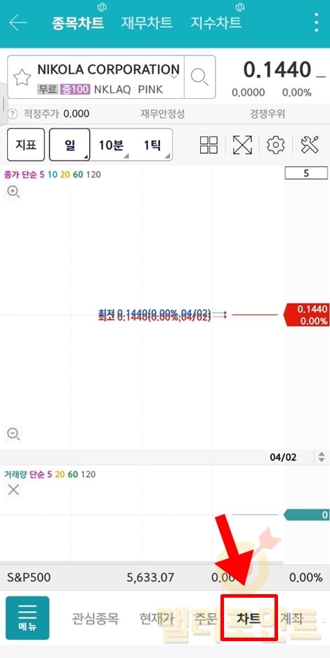 8. 차트 메뉴를 누르면 OTC 종목의 차트를 확인할 수 있습니다.
