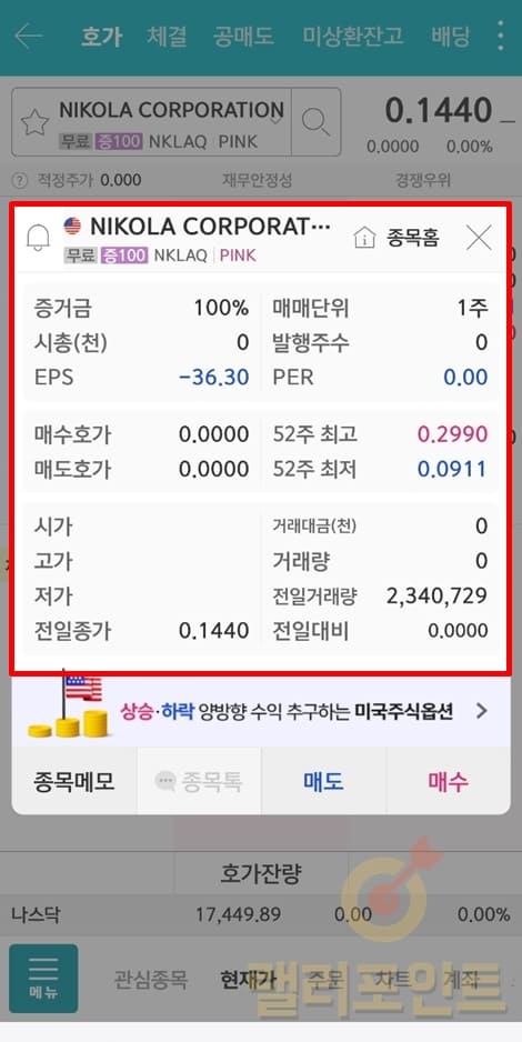 7. 현재 선택한 미국 OTC 종목의 상세한 정보를 확인할 수 있습니다.