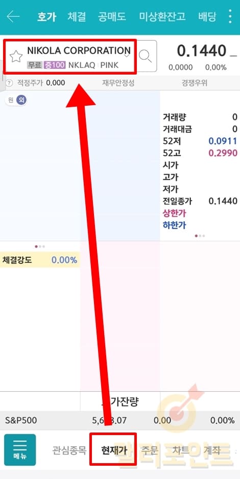 6. 정보를 확인하고 싶다면 현재가 > 상단 종목명을 클릭합니다.
