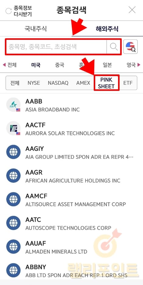5. 검색된 OTC 종목을 선택합니다.