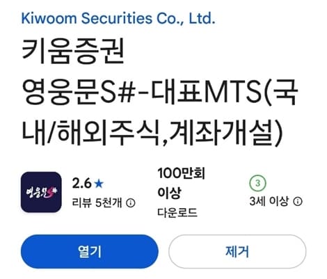 1. 스마트폰에서 키움증권 영웅문S# 앱을 실행합니다.