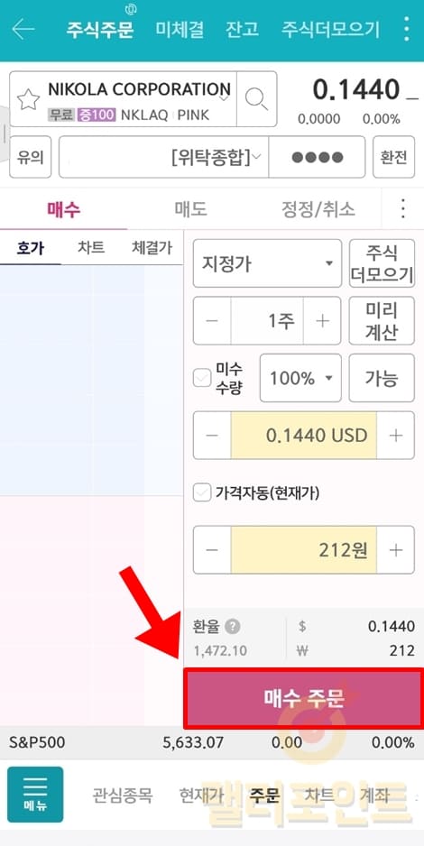11. 설정이 완료되었다면 매수 주문을 클릭합니다.