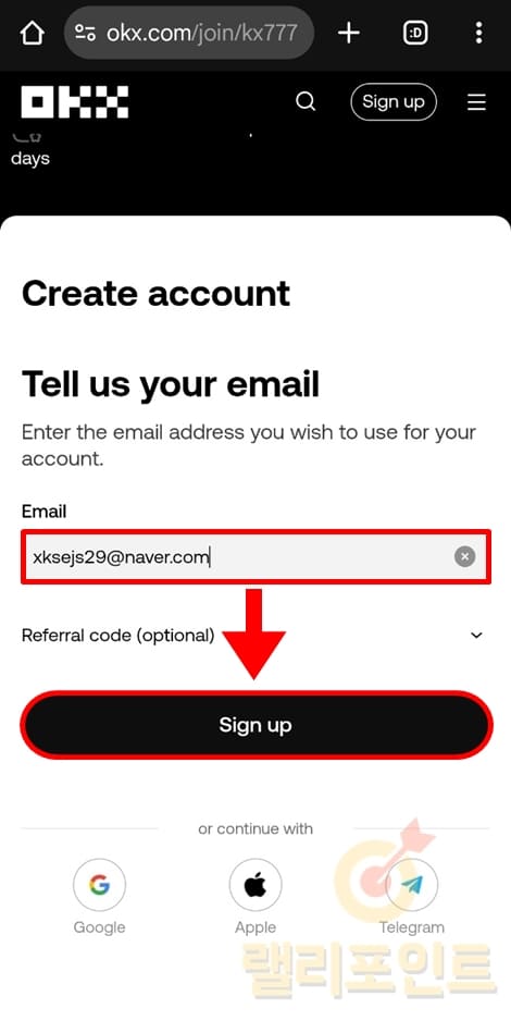 위 링크로 접속하여 OKX 가입을 진행하면 '자동으로 수수료 최대 할인' 및 '최대 60,000달러 지급 이벤트'에 참여할 수 있습니다. 다른 링크로 진행할 경우 이러한 혜택이 적용되지 않을 수 있으니 주의하세요. 참고로 모바일 어플을 설치하여 가입을 진행할 경우엔 직접 레퍼럴 추천인 코드에 'KX777'를 입력해주시면 됩니다.