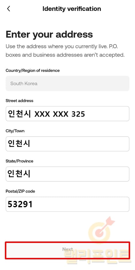 30. 상세 주소지를 입력한 후 Next를 클릭합니다.