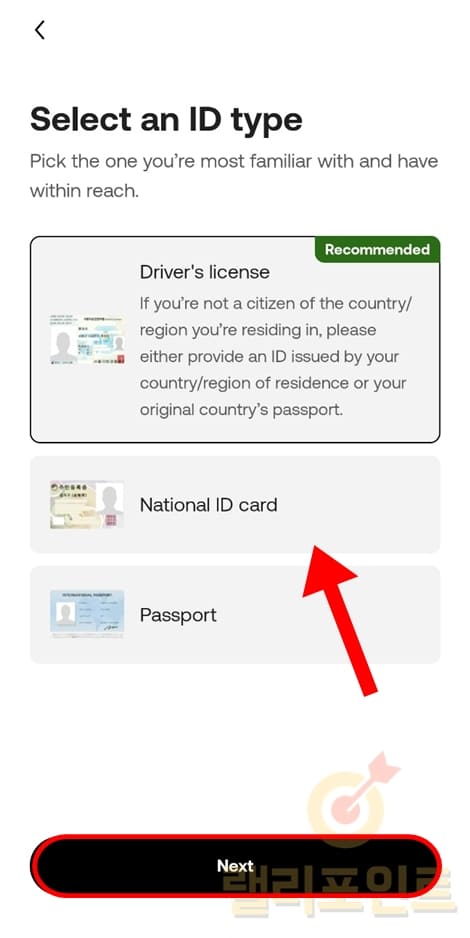 23. 인증에 사용할 신분증을 하나 선택합니다.