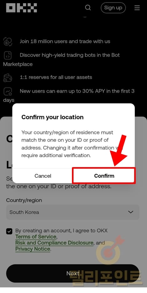 5. 안내 팝업에서 Confirm을 누릅니다.