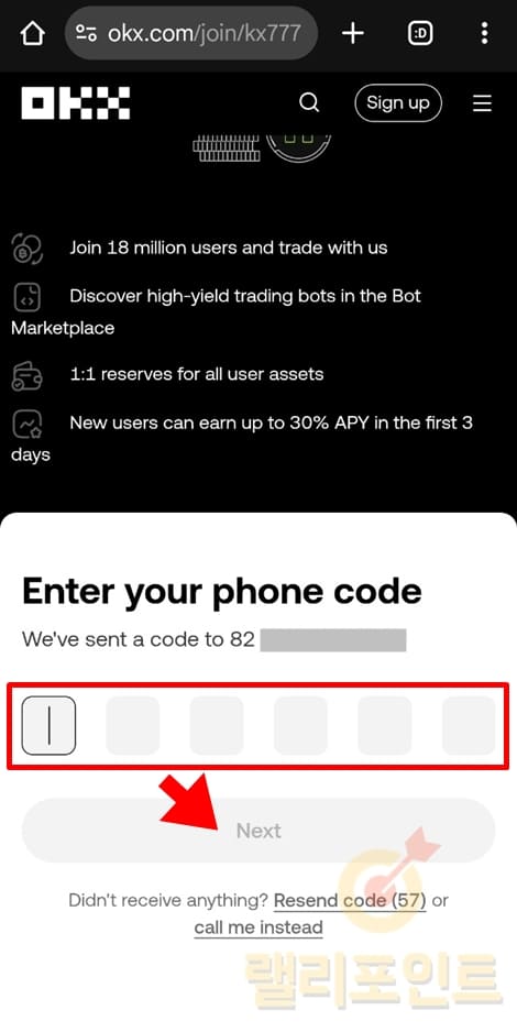 11. 휴대폰 문자 메시지로 수신된 인증번호를 기입합니다.