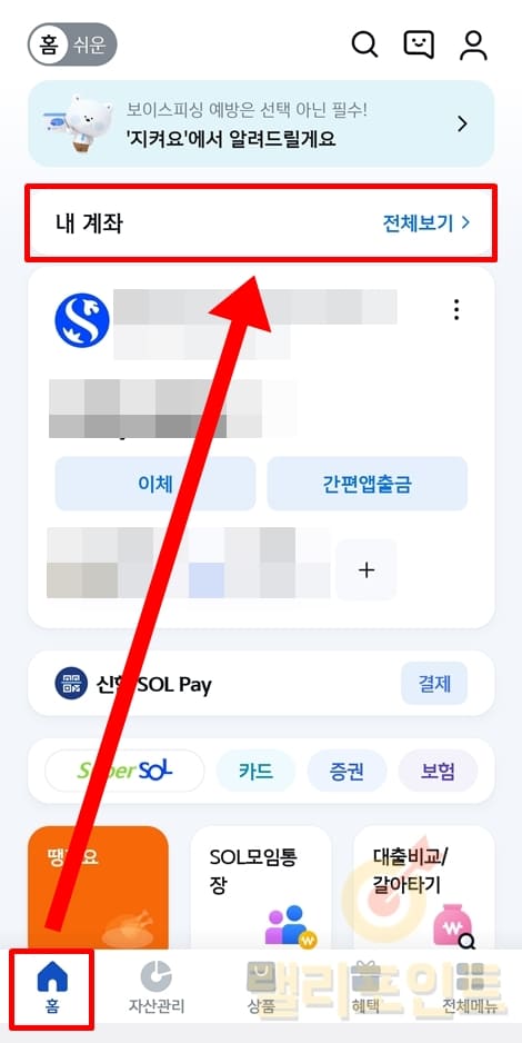 2. 홈 화면 상단에서 내 계좌를 클릭합니다.