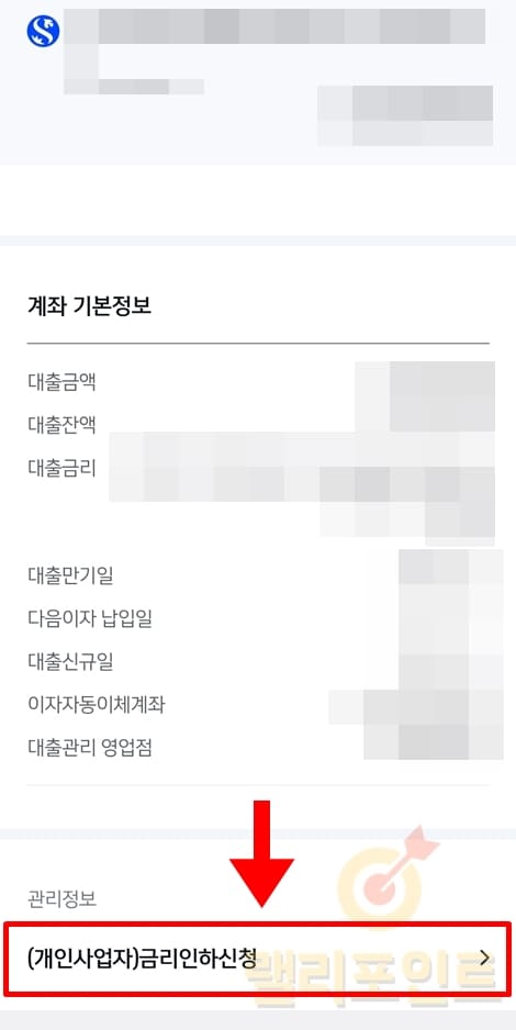 5. 화면 아래에서 금리인하신청 메뉴를 클릭합니다.