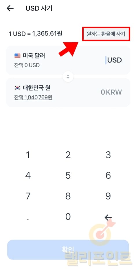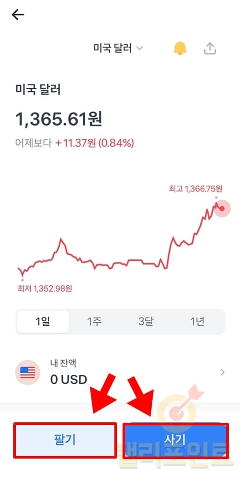6. 원하는 환율에 팔기 / 사기를 클릭합니다.