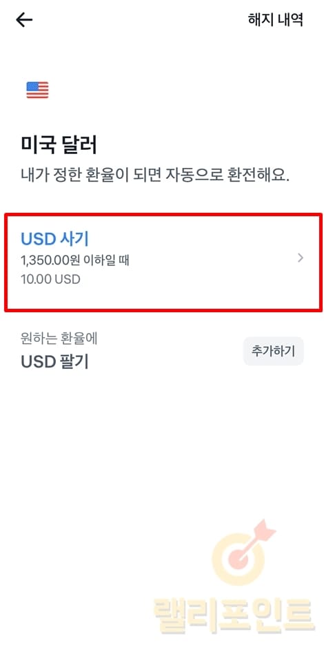 ① 매수: 목표 환율에 도달하면 자동으로 외화 매입하기
