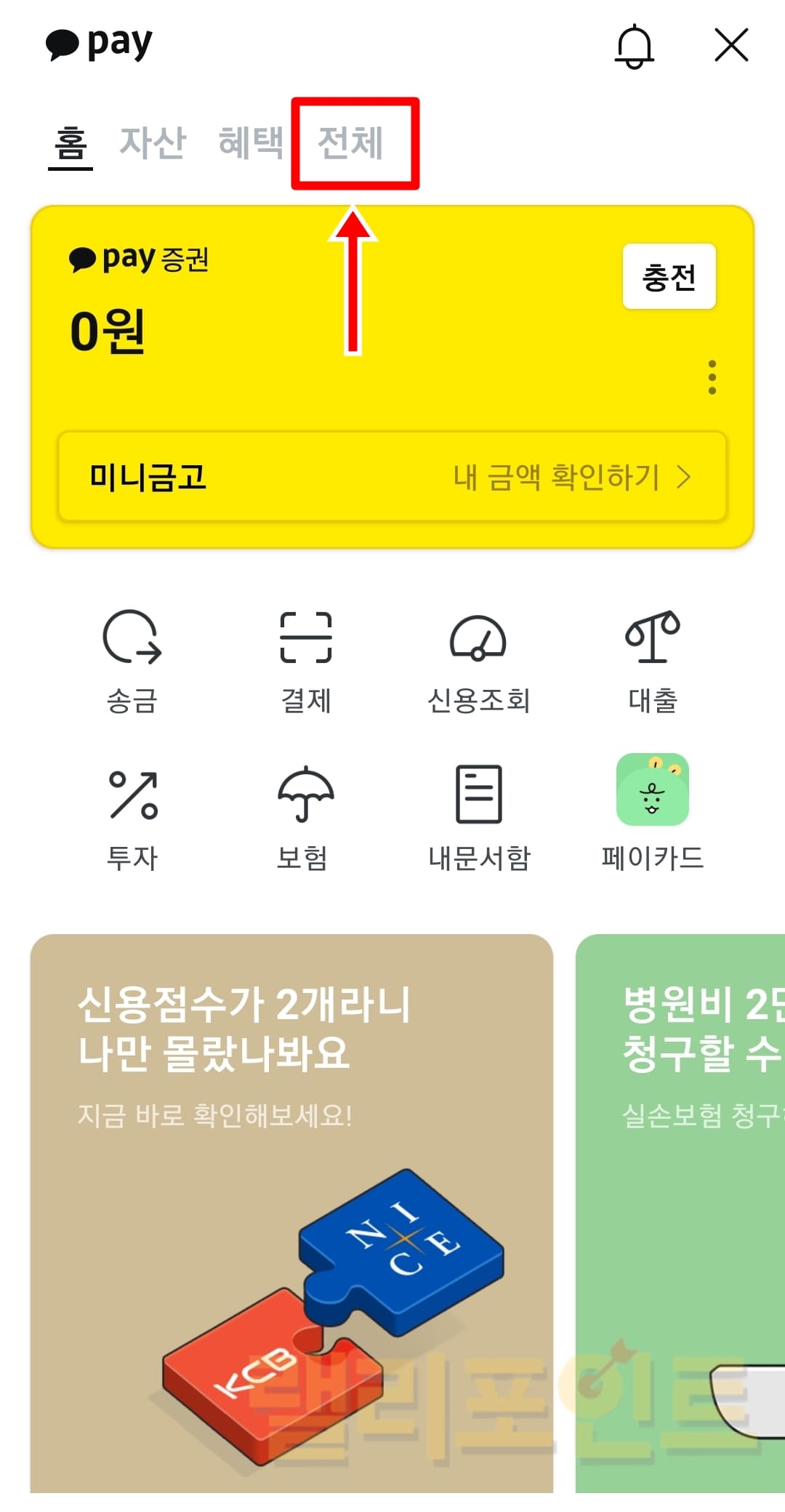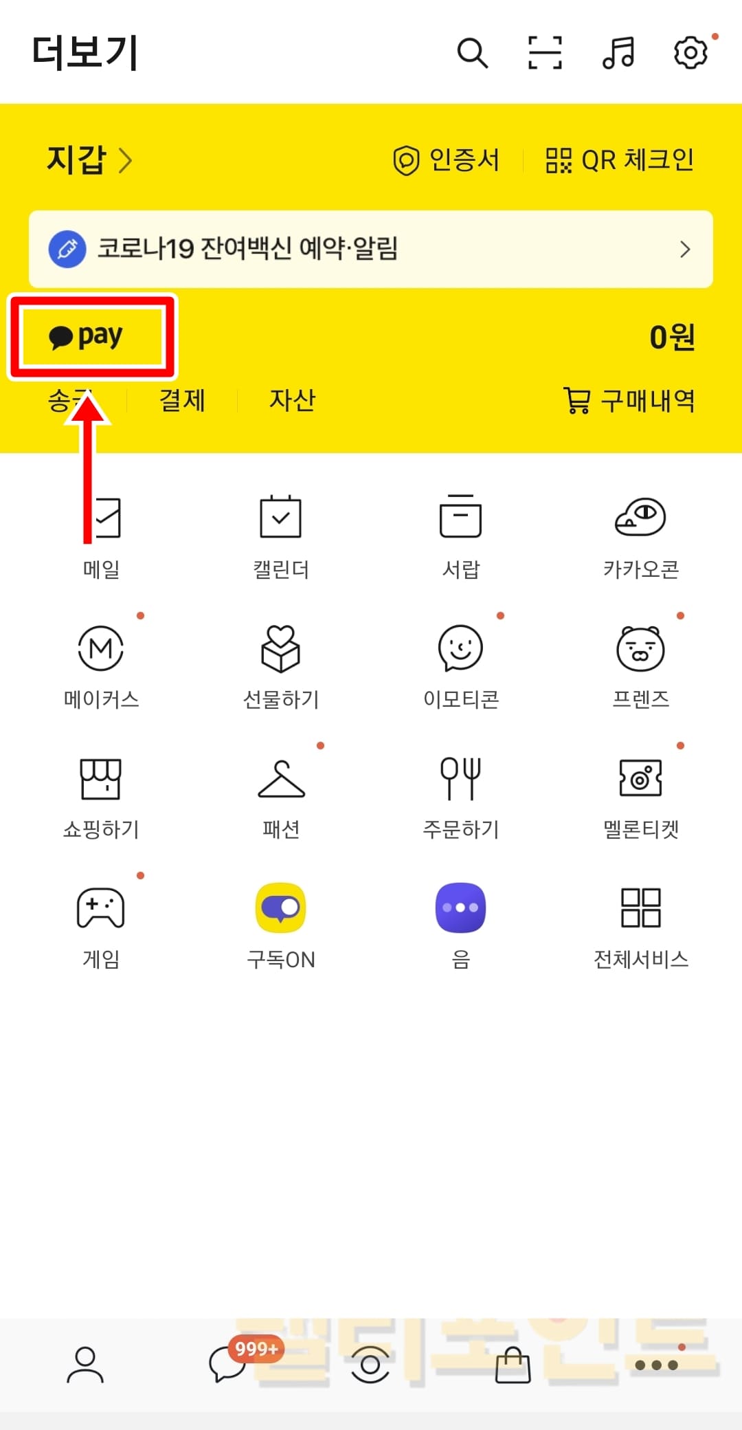 3. 상단의 카카오페이 아이콘을 누릅니다.