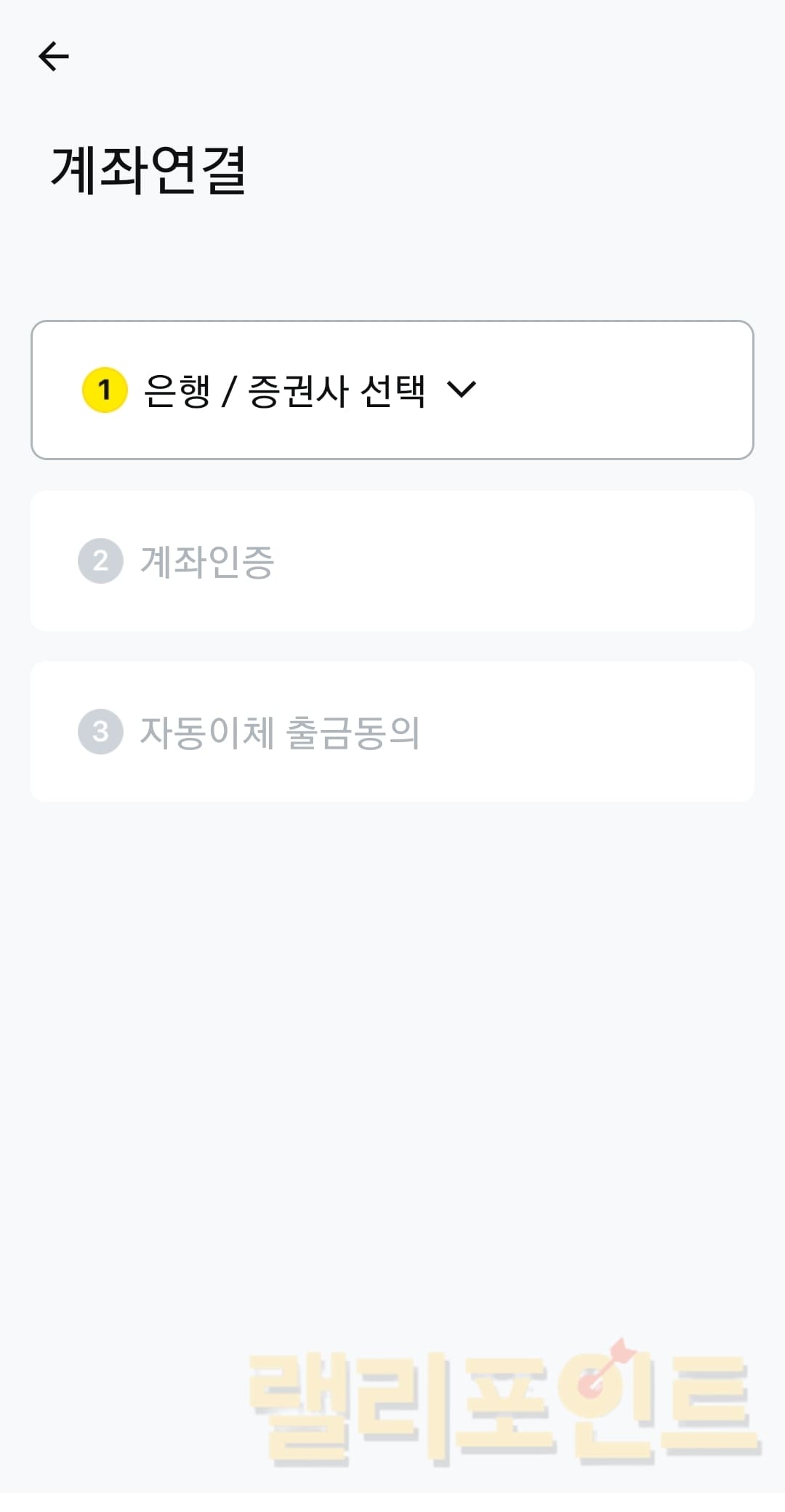 계좌연결시 은행/증권사 선택 > 계좌인증 > 자동이체 출금동의 순으로 진행이됩니다. 이 때 계좌인증은 1원 입금 후 입금자명을 기입하는 것이니 참고하시길 바랍니다.
