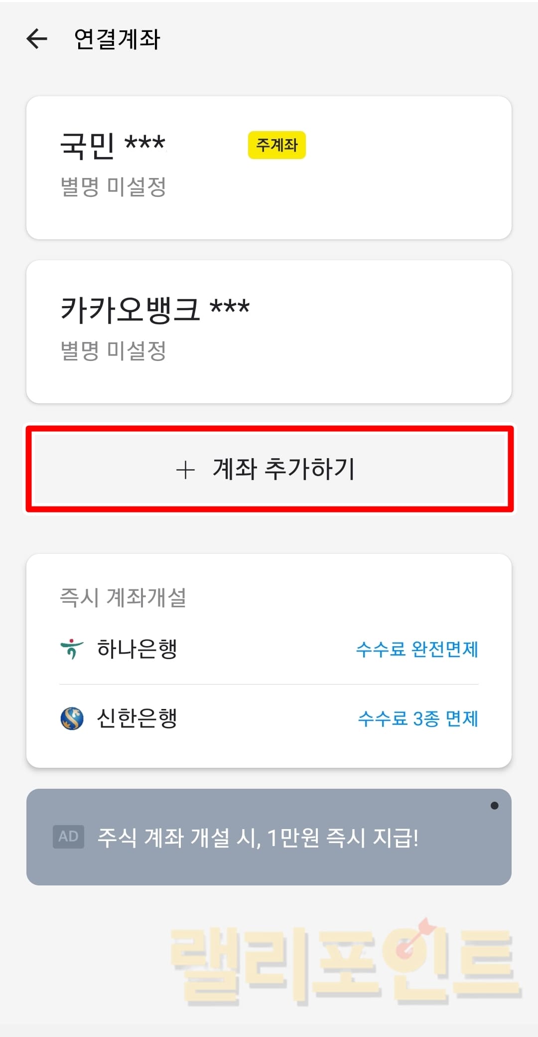 7. +계좌 추가하기를 누릅니다.