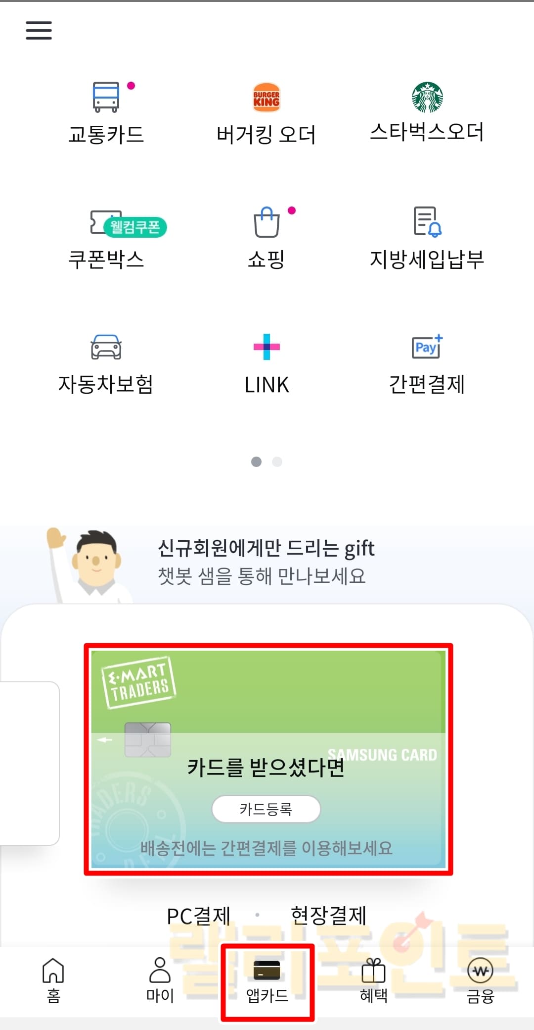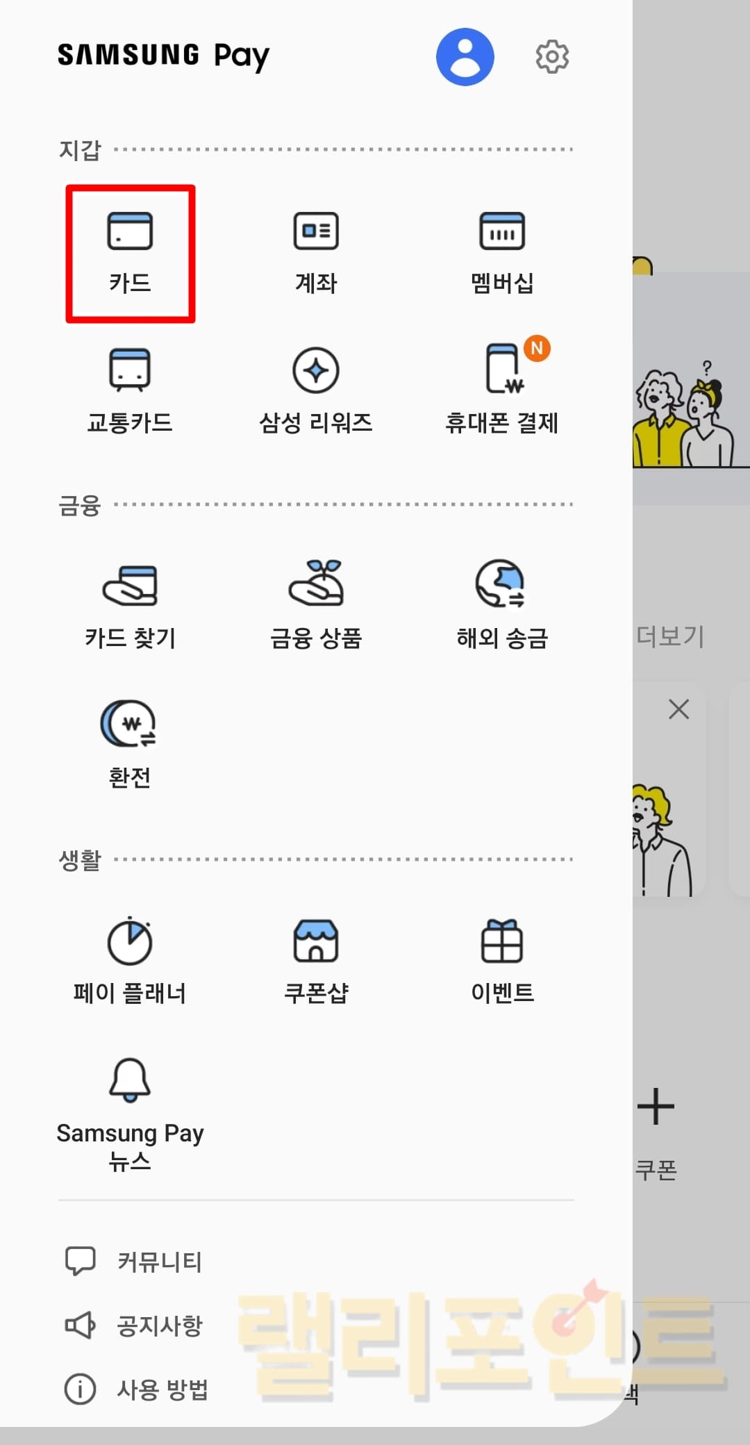 2, 앱카드 메뉴에서 카드를 클릭합니다.