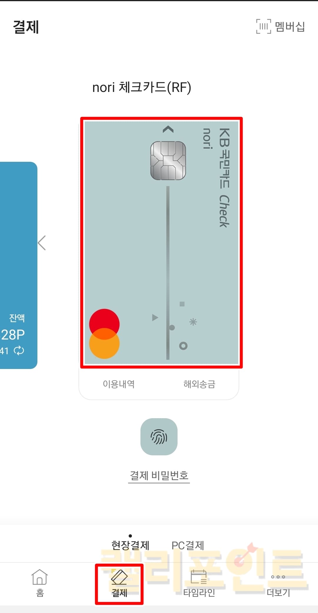 1. KB PAY 앱에서 결제를 클릭합니다.